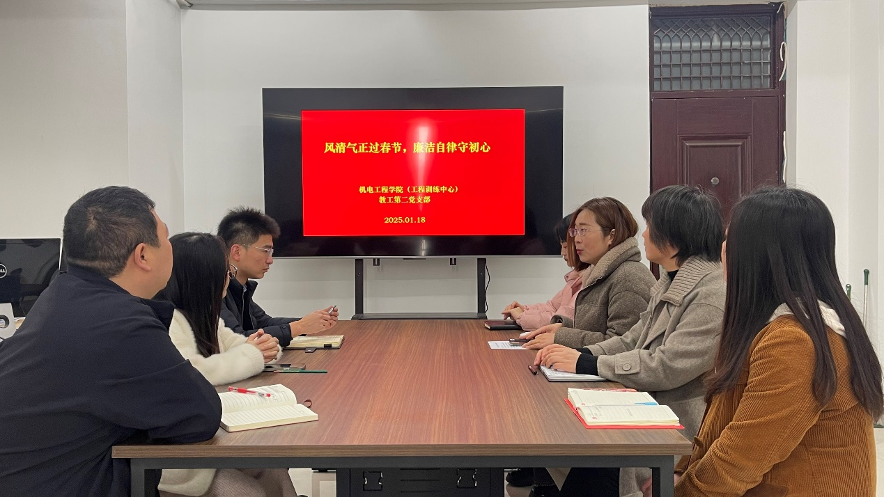 为深入贯彻落实全面从严治党要求,增强党员干部廉洁自律意识,营造风清气正的节日氛围,2025年1月18日机电工程学院教工第二党支部开展了以“风清气正过春节,廉洁自律守初心”为主题的党日活动。此次活动通过专题学习、警示教育、党员交流等多种形式,引导广大党员在春节期间严格遵守廉洁纪律,弘扬清正廉洁的优良作风。