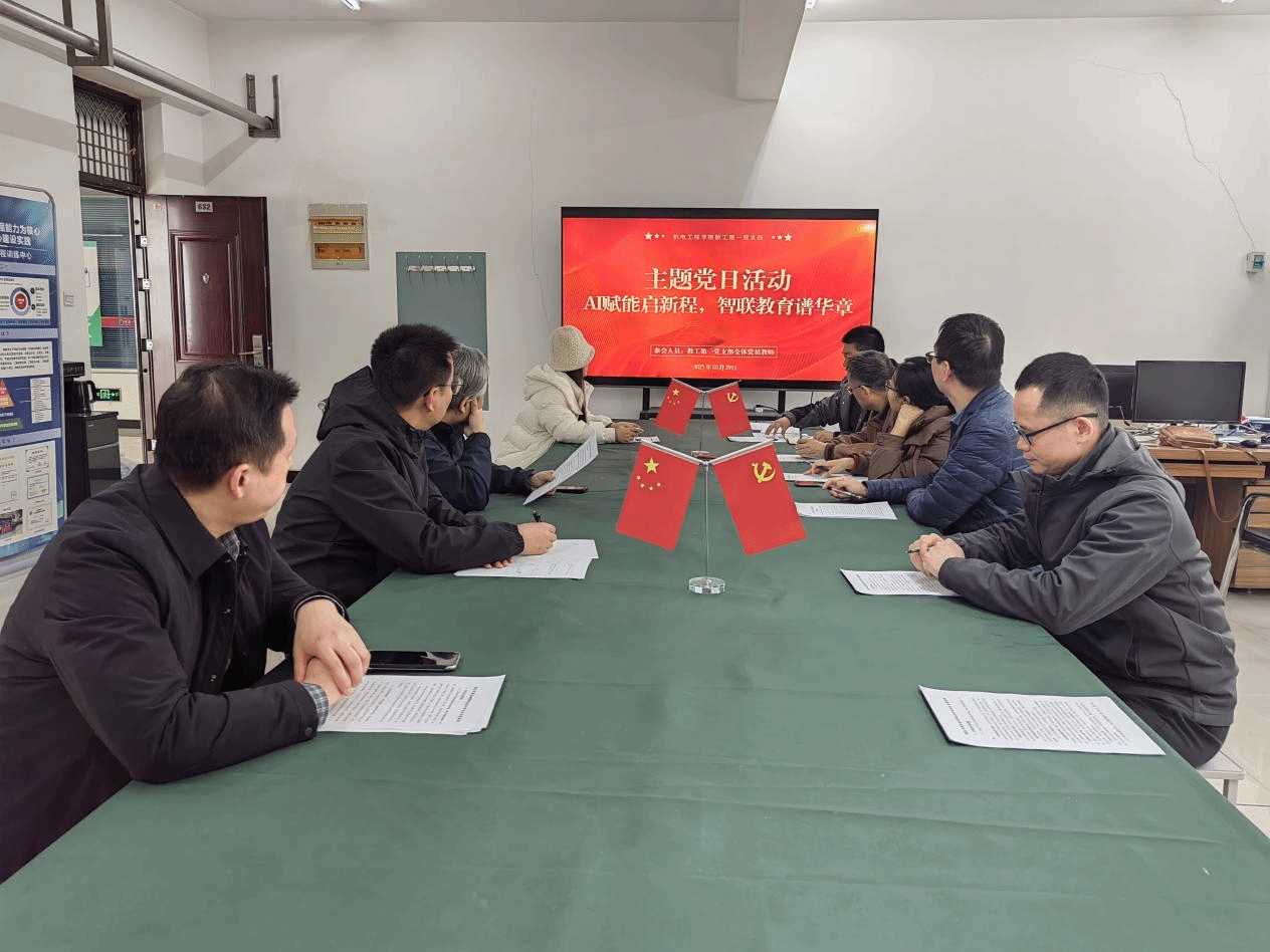 为深入贯彻落实《中国教育现代化2035》战略部署,推动人工智能与教育教学深度融合,强化党员教师数字化素养与纪律意识,2025年3月29日,机电工程学院教工第一支部以 “AI赋能启新程,智联教育谱华章” 为主题开展党日活动,全体党员教师通过“理论学习+实践实训+研讨交流”,在教育数字化转型中凝聚奋进力量。