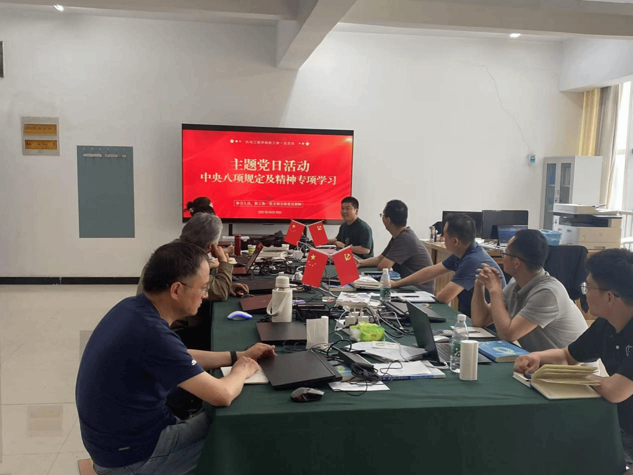为深入贯彻落实中央八项规定精神,强化党员教师廉洁自律意识,筑牢拒腐防变思想防线,2025年4月30日,机电工程学院教工第一支部以“严守纪律规矩,涵养清风正气”为主线,组织开展“中央八项规定精神专项学习”主题党日活动。支部全体党员通过理论学习、案例剖析、自查自纠“三步走”,推动廉政教育入脑入心、见行见效。