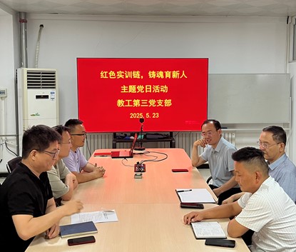 为深化党建与业务融合,探索实训教学育人新模式,2025年5月23日,机电工程学院教工第三党支部在421会议室召开“红色实训链,铸魂育新人”主题党日活动。支部书记李文峰主持会议,全体支部党员教师参会,围绕“党员示范岗”创建、党建质量提升及“红色实训链”建设展开研讨。