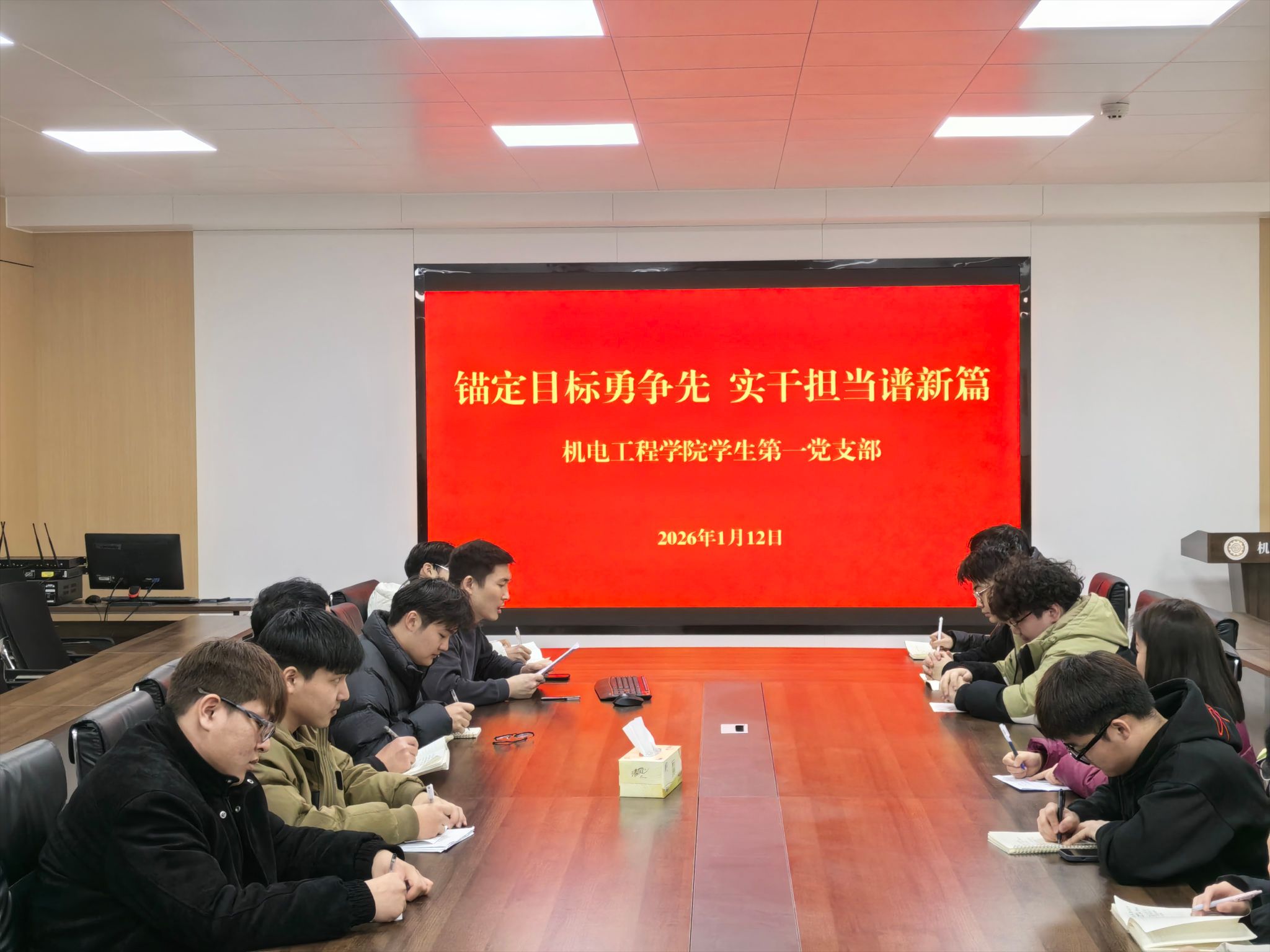 为为深入学习贯彻习近平新时代中国特色社会主义思想,激励党员坚定目标、实干争先。1月12日,学生第一党支部在学院会议室544开展“锚定目标勇争先,实干担当谱新篇”主题党日活动,组织支部全体党员集中学习国家主席习近平发表的二〇二六年新年贺词。