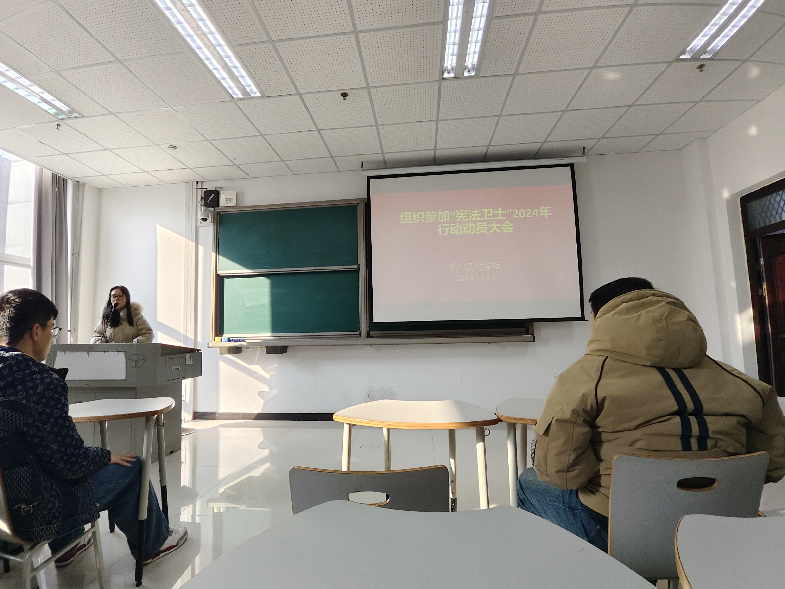 此次动员大会为机电工程学院 “宪法卫士” 2024 年行动计划的顺利开展奠定了坚实基础。相信在学院的精心组织和学生干部的积极带动下,机电工程学院的同学们将以饱满的热情投入到宪法学习活动中,为弘扬宪法精神、建设法治校园贡献自己的力量。(审核:余璐;图:聂琛)