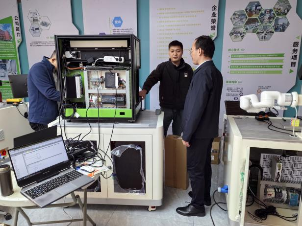 副院长岑辉在公司负责人的陪同下,参观了公司的产品展示区,详细了解了公司的主要产品和研发成果。在随后的会谈中,武汉筑梦科技有限公司负责人介绍了公司的发展历程、团队建设和未来规划。副院长岑辉介绍了机电工程学院的基本情况,并表达了学院与企业在人才培养、技术研发和实习实训等方面进行合作的意愿。双方一致同意,将进一步深化校企合作,共同探索人才培养、技术研发等方面的合作途径。武汉筑梦科技有限公司负责人表示,愿意与机电工程学院建立长期稳定的合作关系,共同推动双方在相关领域的深入发展。