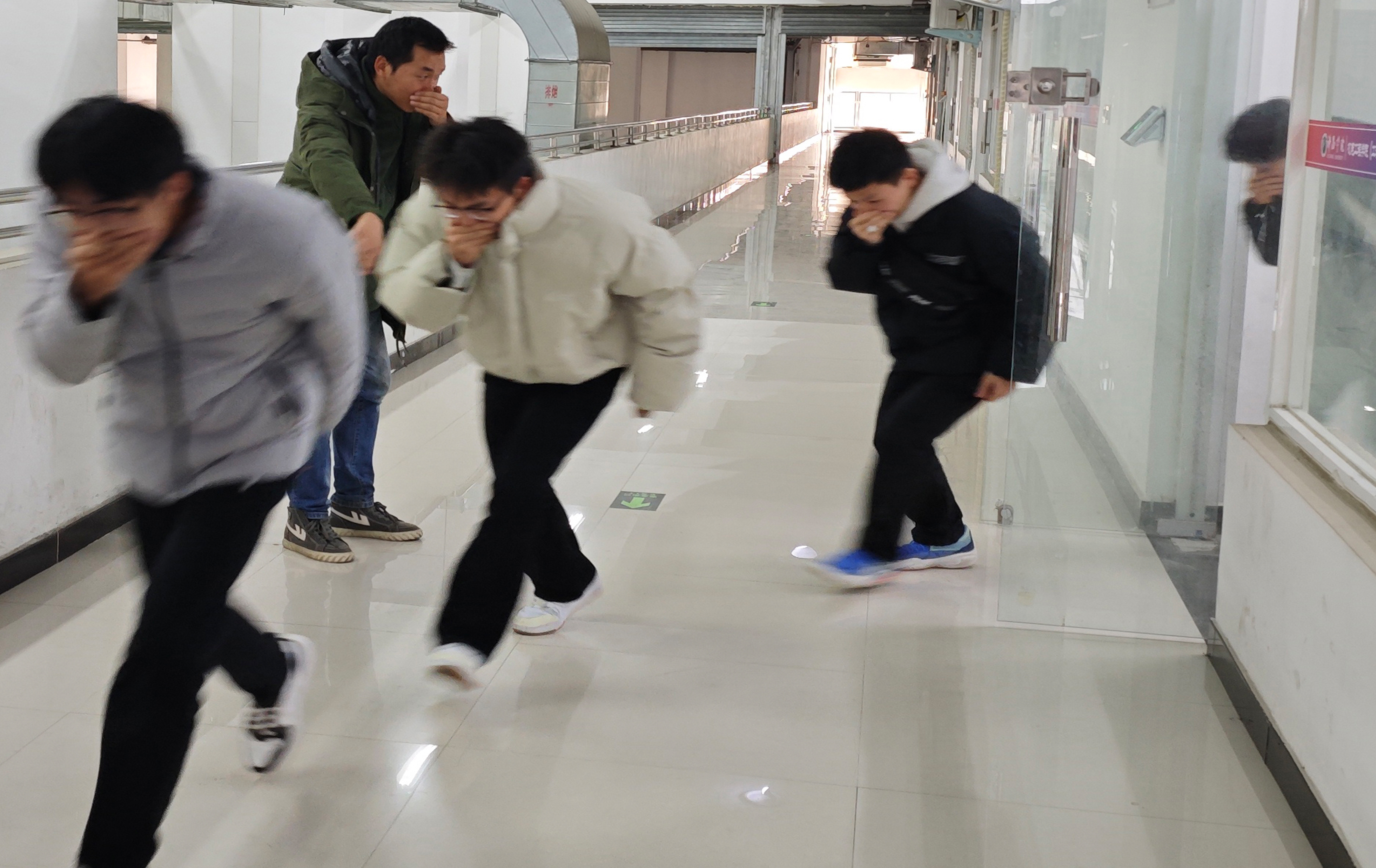 逃生演练在工程训练中心二楼培训室、楼道等区域有序展开。随着演练信号的发出,参加演练的师生迅速按照预定方案进入紧急疏散状态,有序撤离。此次逃生演练有效检验了学院应急疏散预案的可行性和有效性,进一步提高了师生的自救互救能力。