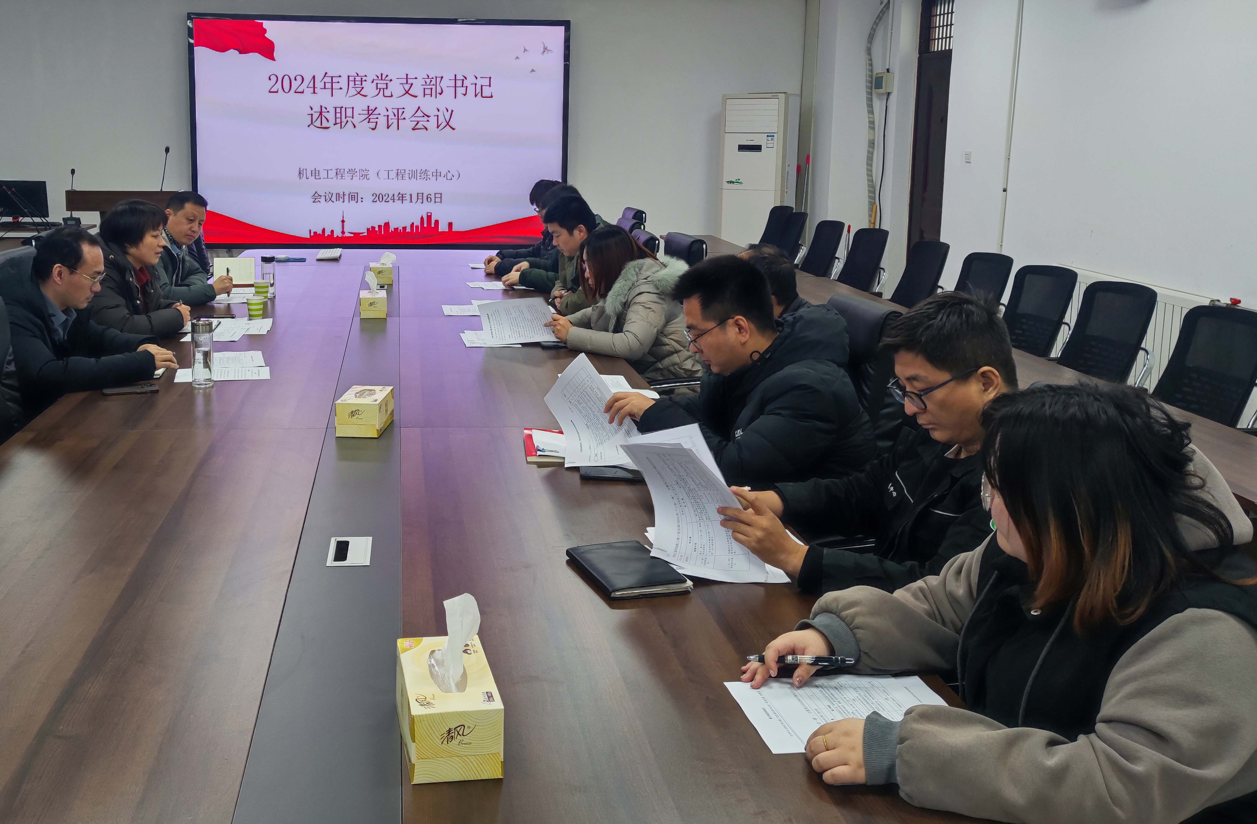 2025年1月6日上午,机电工程学院党委在院会议室召开了2024年度党支部书记述职评议考核会议。机电工程学院领导班子、党委委员、支部书记、支部委员、党员代表等参加会议,会议由院党委书记白晓玉主持。