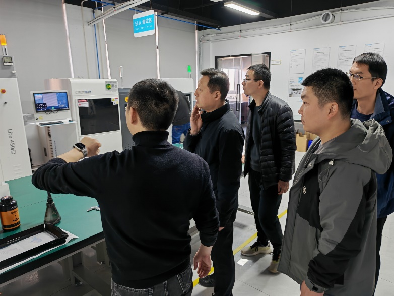 上海联泰科技股份有限公司是国内最早从事3D打印技术应用的企业之一,在国内3D打印技术领域具有广泛的行业影响力和品牌知名度。在公司工程制造部负责人的热忱陪同下,晁艳普副院长一行首先对企业的生产车间及产品展示区进行了实地参观。在参观进程中,团队成员对企业的先进3D打印制造技术、精密生产流程以及创新产品体系进行了深入了解。