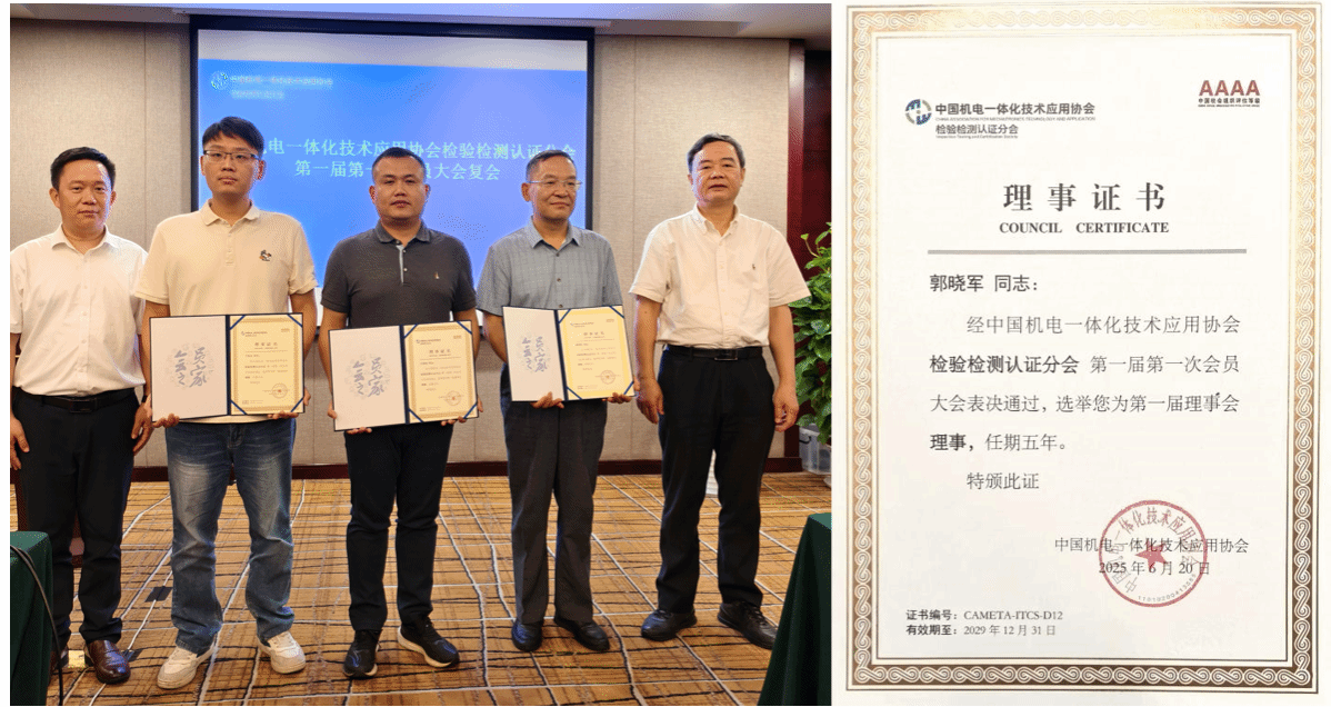 2025年6月20日,中国机电一体化技术应用协会检验检测认证分会第一届第一次会员大会在北京召开。大会选举并聘任了第一届理事会和理事会负责人,我院教师郭晓军凭借扎实的专业素养和突出的贡献,当选第一届理事会理事,彰显了我校在机电一体化行业的影响力。