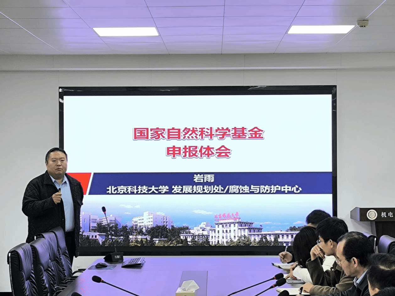 为进一步提升科研创新能力与核心竞争力,充分激发教师申报国家自然科学基金项目的积极性,11月12日,机电工程学院在544会议室召开2026年度国家自然科学基金申报动员暨专家报告会。北京科技大学岩雨教授应邀作专题报告,副校长赵艳敏出席会议并作动员讲话。科研处、机电工程学院相关负责人及机电工程学院博士教师参加报告会。会议由副院长岑辉主持。