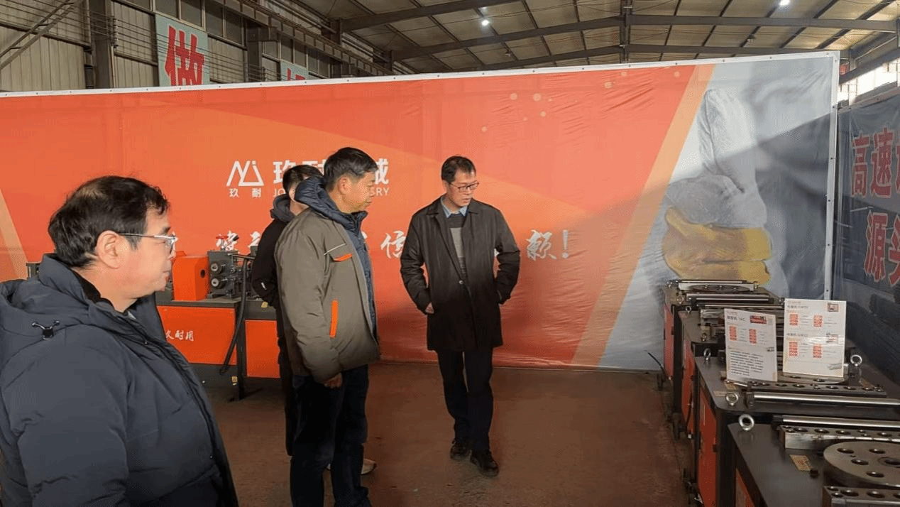 在赵万军的陪同下,学院教师深入生产一线,实地考察了公司的产品展示区、加工车间、装配车间及调试车间等核心部门。企业负责人系统介绍了公司专注建筑机械领域的研发制造布局,重点讲解了数控弯箍机、钢筋调直切断机、钢筋切断机、钢筋弯曲机等系列产品的技术特点与市场应用情况。通过现场参观,学院代表直观了解了企业在机械设备制造、工艺流程控制、质量检测体系等方面的实际运作情况,切身感受到其在细分领域的专业积累与制造实力。