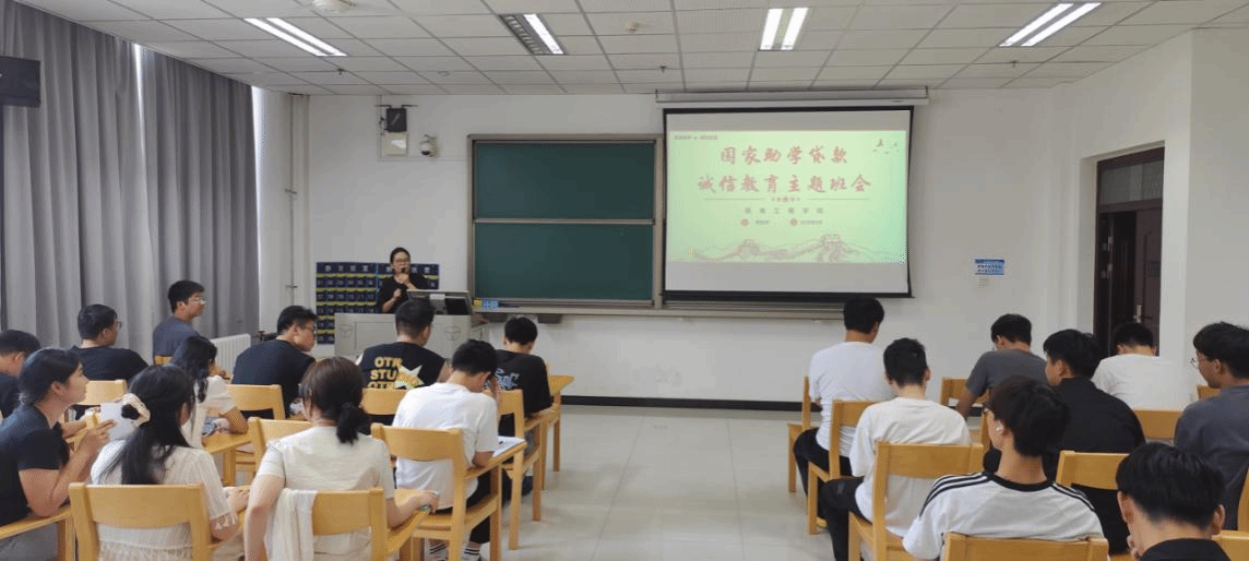 为保证毕业生离校后还款工作的顺利开展,协助学校资助工作的有序进行,着力构建以诚信为荣、以感恩为上的校园文化氛围。2025年5月20日,我院在文综楼E-302面向2025届毕业生开展了以“励志、感恩、诚信”为主题的诚信教育,资助专干柴怡芳老师及2025届国家助学贷款毕业生参加了此次活动。