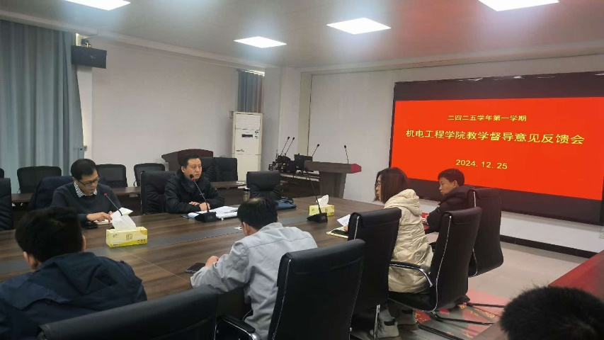 为进一步加强教学管理,促进教学质量的全面提升,机电工程学院于2024年12月25日举行了校级督导意见反馈及二级学院督导反馈会议。学院副院长李瑞华(主持工作)、副院长晁艳普、学院督导小组全体成员和部分教师代表参加了会议。此次会议由学院副院长晁艳普主持,旨在通过校级督导反馈和二级学院督导听课反馈,推动学院教学质量的持续优化。