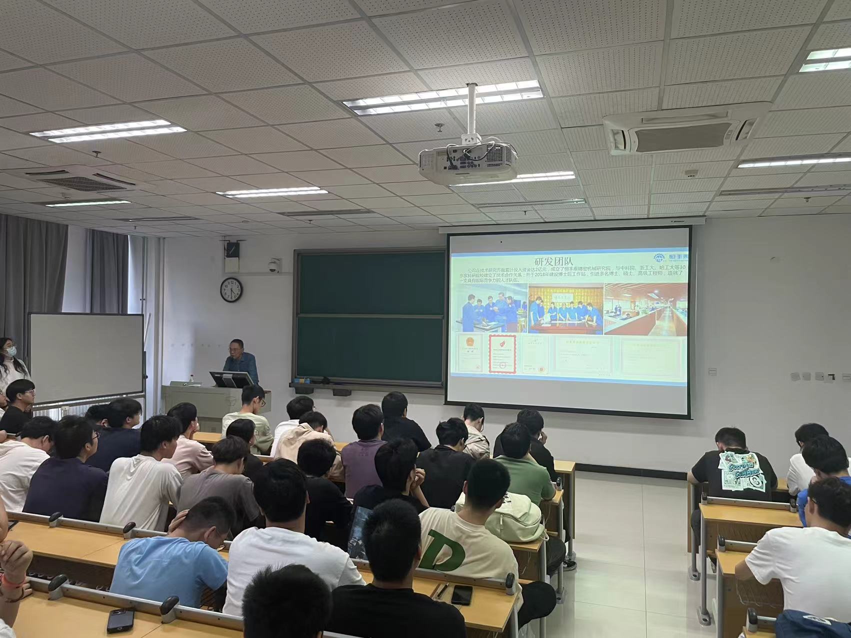 招聘会现场,恒丰泰的招聘团队详细介绍了公司的发展历程、企业文化、主营业务及未来发展规划,并重点阐述了公司为学生提供的实习机会和职业发展路径。参与本次招聘会的学生将有机会直接在公司进行实习,期间不仅可以接触到最前沿的机械制造技术和工艺流程,还能在校企合作导师郭晓军的指导下完成毕业设计,实现理论与实践的深度融合。更重要的是,对于表现优异的学生,恒丰泰将提供毕业后直接入职的机会,为他们开启职业生涯的新篇章。