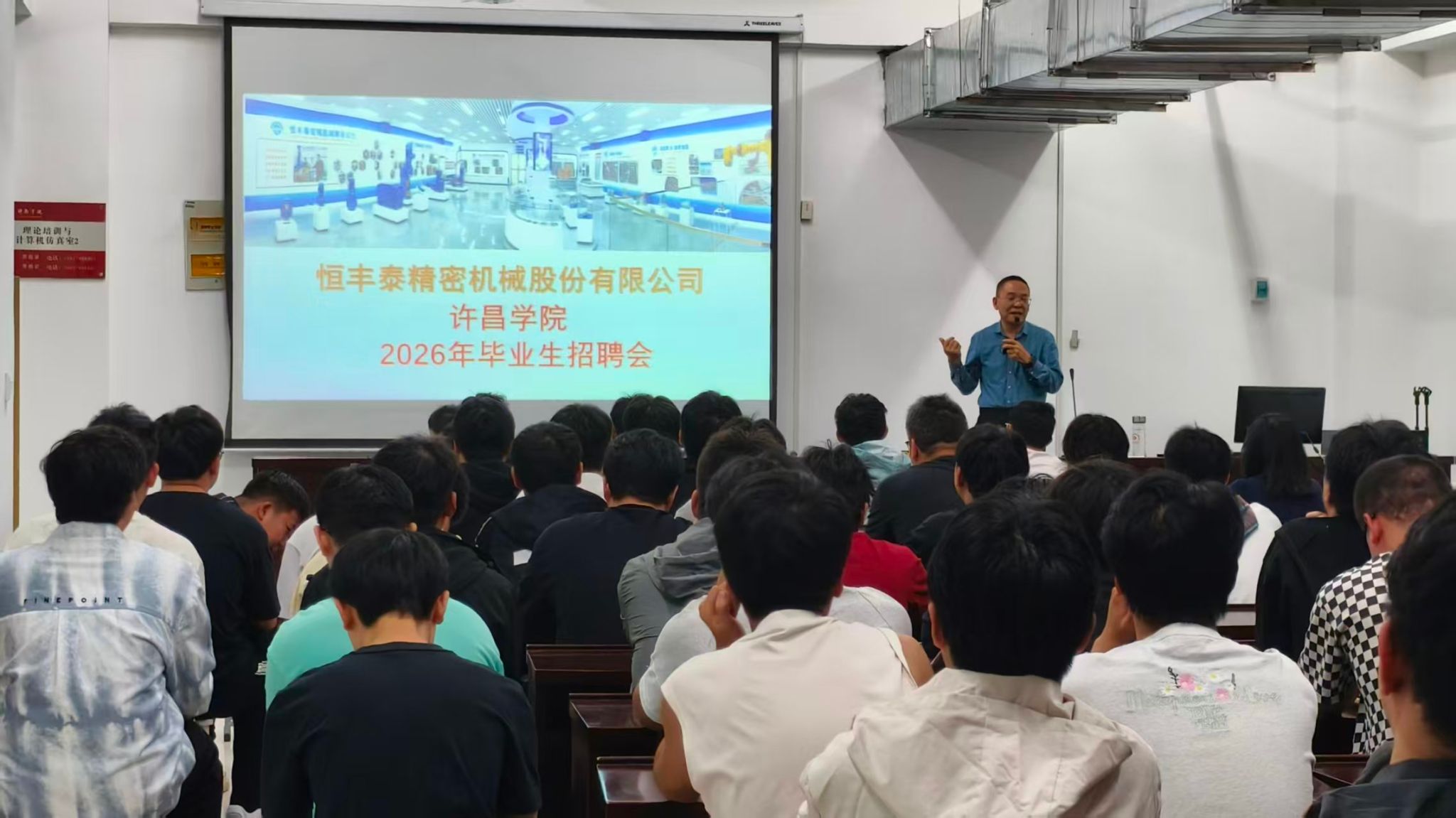 为搭建校企人才对接桥梁,助力毕业生高质量就业,9月17日,机电工程学院在工程实训中心二楼钳工理论培训室成功举办恒丰泰精密机械有限公司专场招聘会,2026届毕业生踊跃参会,最终5名毕业生与企业达成就业意向并成功签约。