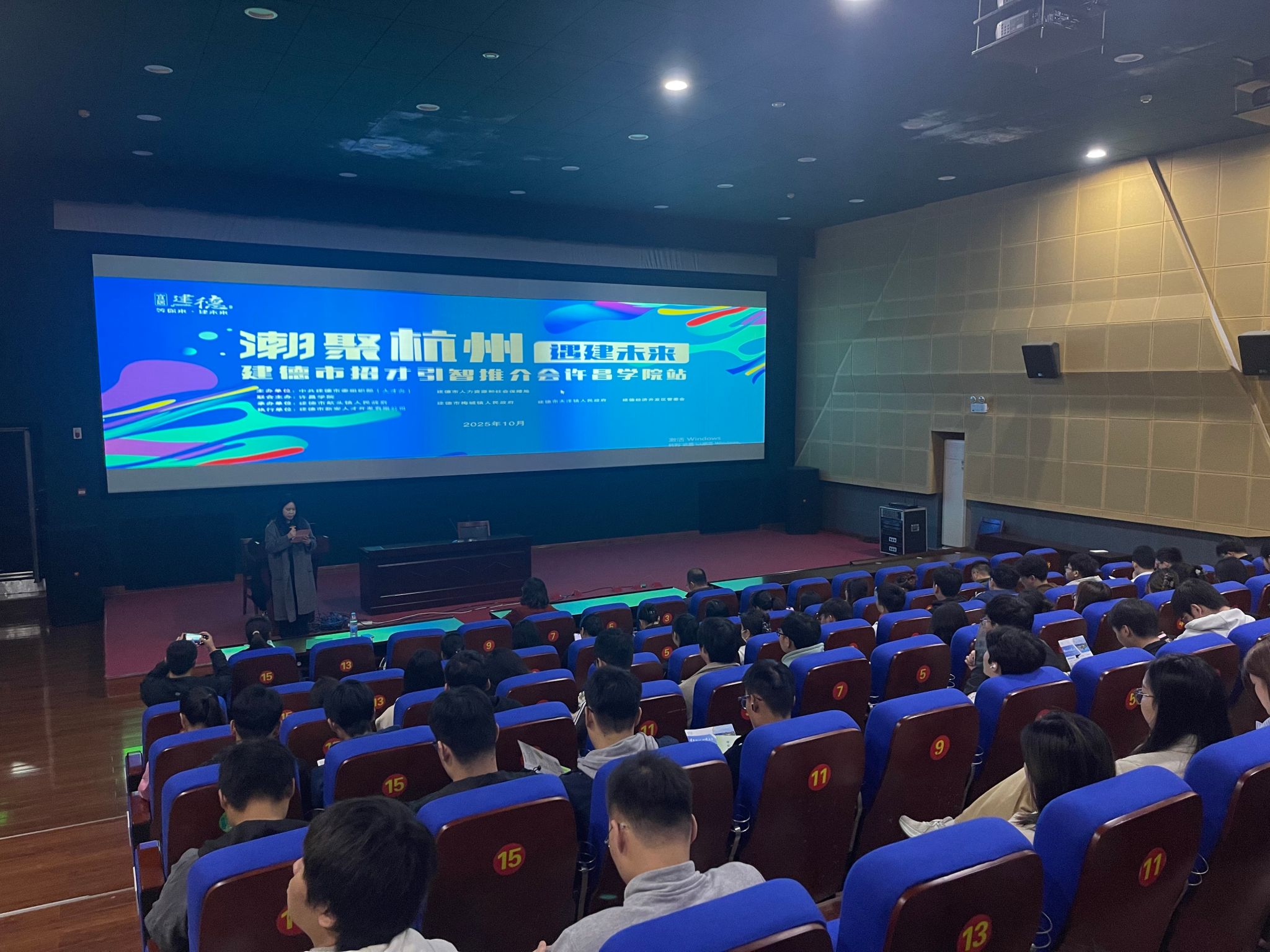2025年10月16日下午,建德市招才引智推介会在许昌学院学生中心二楼报告厅顺利举行。本次推介会由许昌学院与建德市人力资源和社会保障局联合主办,机电工程学院承办,吸引了机电工程学院及其他兄弟学院的数百名2026届毕业生到场,为毕业生与建德市优质岗位搭建起直接对接的桥梁。